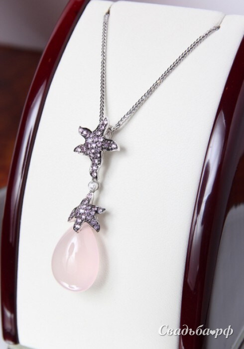 Золото 750°, Бр 0,03 ct, розовый кварц 17,36 ct, сапфиры 0,64 ct