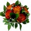 Круглый букет невесты из 7 роз сорта Циркус, рускуса, гипсофилы и лозы. Диаметр букета 23 см