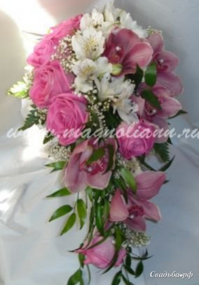 Розы, орхидеи, альстромерии, хризантемы, зелень
