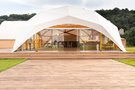 Белый застекленный куполообразный шатер площадью 200 м2. Минималистичный дизайн, панорамное остекление, вид на волжские просторы и виллы. Имеет кухню и 3 гостевых сан.узла.