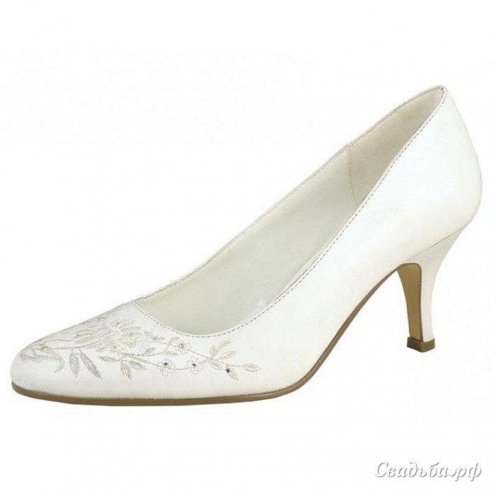 Свадебные туфли на невысоком кабучке с изящной вышивкой на носике. Размеры в наличии 35-37.