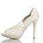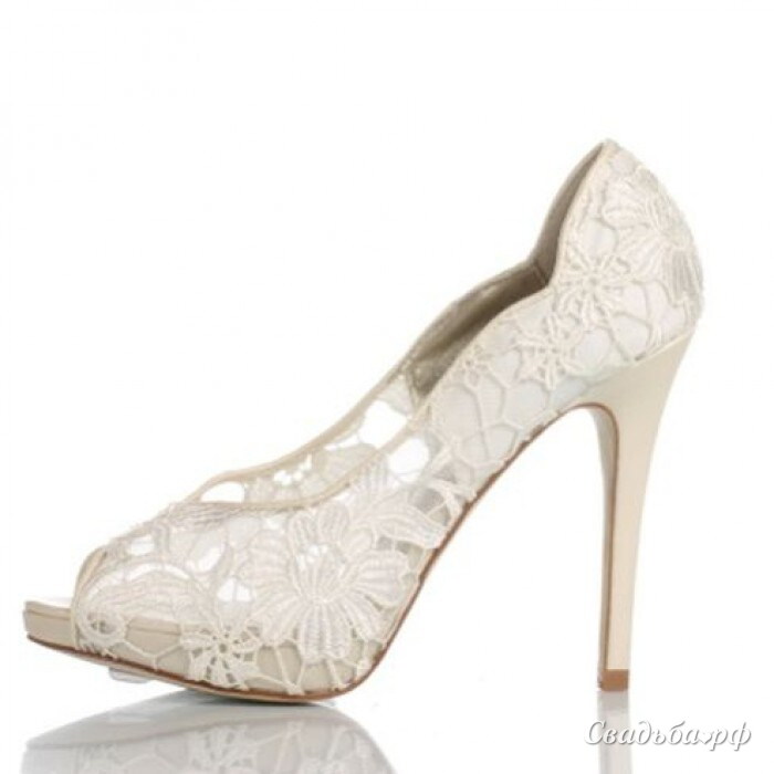 Кружевные свадебные туфли на высоком каблуке и скрытой платформе.