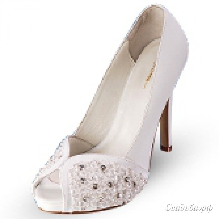 Свадебные туфли на высоком каблуке (11 см) с открытым носом, декорированные бисером и кристаллами