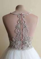 Дизайнерское платье в идеальном состоянии! Сшито на заказ. Очень яркий искрящийся лиф страз Swarovski и нежная воздушная юбка молочного цвета. Расшивка ручной работы! Пикантный и довольно высокий разрез с правой стороны. Съёмный шлейф. Очень комфортное и легкое. Размер 40-42 +серьги Фото и видео вышлю дополнительно. Отправлю в любой город.