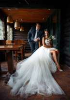 Дизайнерское платье в идеальном состоянии! Сшито на заказ. Очень яркий искрящийся лиф страз Swarovski и нежная воздушная юбка молочного цвета. Расшивка ручной работы! Пикантный и довольно высокий разрез с правой стороны. Съёмный шлейф. Очень комфортное и легкое. + серьги Фото и видео вышлю дополнительно. Отправлю в любой город.