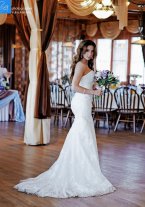 Платье на молнии. В идеальном состоянии, после химчистки. Шлейф можно крепить крючками сзади. Кружева и декоративные милые пуговки. Создает прекрасный силуэт. Длина на 176 см (с туфлями). Если вы ниже, всегда можно подрезать. Платье Абелла от дизайнера Юсуповой! Из коллекции 2013 года!