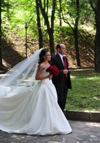 Продаю оригинальное свадебное платье PRONOVIAS с потрясающим длинным шлейфом. По спинке до конца шлейфа идут маленькие шелковые пуговички. Материал 100% шелк. Платье отшивалось по специальному заказу, забирали в официальном магазине PRONOVIAS в Барселоне. Оригинальный чехол и все бирки имеются. Разумный торг уместен. Фата специально для этой модели платья (одной длинны со шлейфом) из одной коллекции. Отделка из тончайшего испанского кружева. Фата продается отдельно.