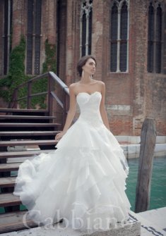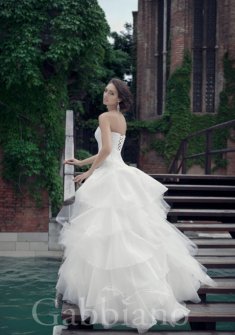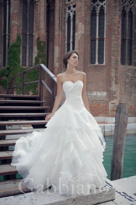 Свадебное платье "Эмма"(Gabbiano). Одевалось один раз, не венчанное. Очень красивое платье, удобный кружевной корсет на шнуровке, юбка многослойная из органзы с вставками из фатина и кружева, преобладают натуральные ткани. Цвет - белый! Силуэт: пышное со слегка заниженной талией. В комплекте: подъюбник, чашки уже вшиты, петелька для шлейфа, чехол, комплект бижутерии. ВАЖНО! в идеальном состоянии, после чистки. Возможен торг!