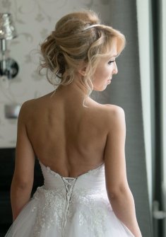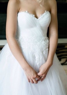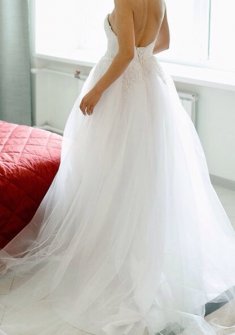 Очень красивое, нежное платье, со шлейфом. Одевалось всего 3-4 часа, так как было ещё второе платье. Платье выглядит абсолютно новым.