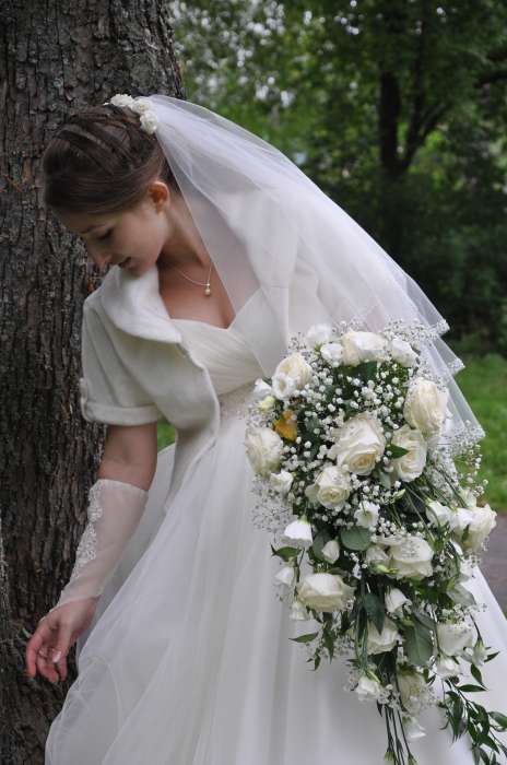 Простое и нежное платье цвета Айвори. Пышная юбка из сетки и корсет с завышенной талией. При покупке до 31 июля 2016 - накидка из искусственного меха и фата в подарок. Возможен выезд к вам на дом для примерки 15го и 16го июля.