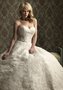 Прекрасное бальное платье украшено по всей поверхности кружевными аппликациями. Лиф декольте в виде сердца. Широкий атласный пояс с акцентом на кристаллы.