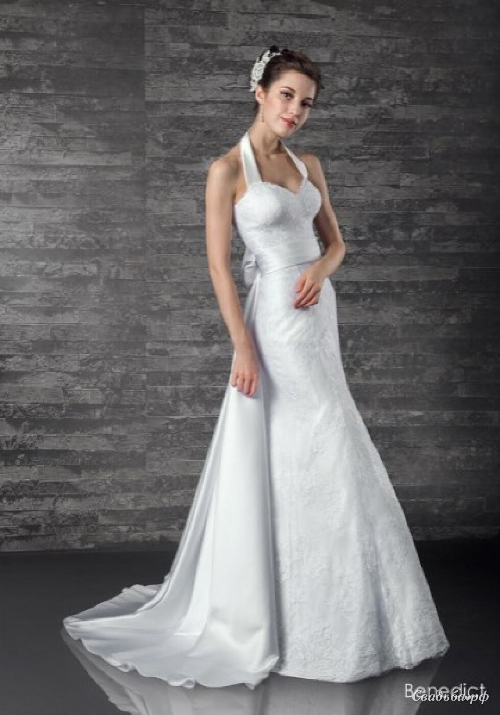 Кружевное свадебное платье со шлейфом Benedict. Широкий атласный пояс сделает талию невесты идеально стройной. Съемные детали - атласная бретель и атласный шлейф. Без них - мы получаем прямое свадебное платье из кружева, которое понравится невестам, которые желают лаконичный наряд из тонкого кружева, который будет подчеркивать фигуру.