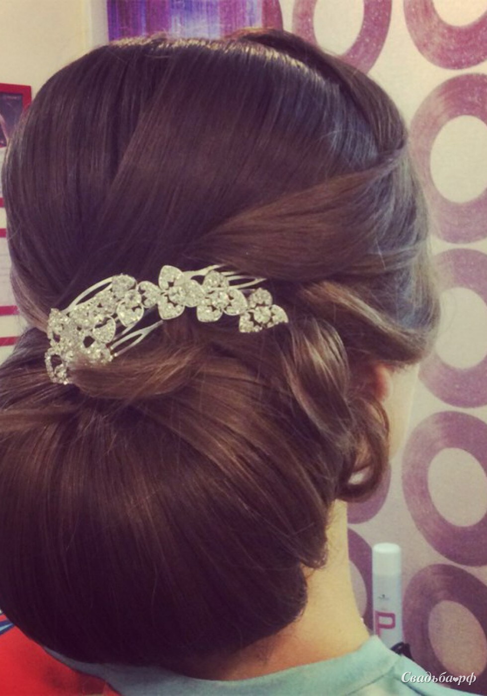 Прическа на свадьбу Низкий гладкий пучок (Е18708)