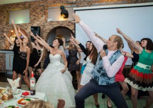 Развлечение гостейИдеи свадебной программыСвадьба – праздник позитивный. Конечно, с небольшой грустинкой, ведь пташки выпорхнули из отчего гнезда. Но развлекательная программа помогает зарядиться бодростью и яркими эмоциями. -