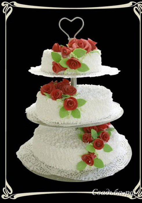 Поверхность торта украшена взбитыми сливками, декор выполнен из королевской глазури. Основа бисквит или медовик со взбитыми сливками или йогуртовым суфле. Масса от 6 кг. Стоимость 1 кг.- 750 рублей.