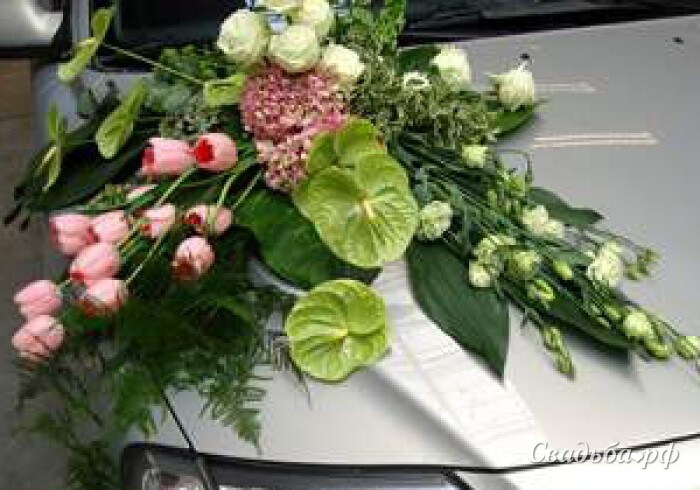 Современная свадьба – это тщательно отрежиссированное театральное действие, немалую роль в котором играют автомобиль и его свадебное украшение. Машина бывает так пышно украшена, что становиться своеобразным подиумом для цветов. Бывает, лишь бархатными лепестками роз, но выглядит элегантно и изыскано. Флористические композиции на свадебной машине гармонично вписываются в дизайн авто, подчеркивают его форму и не станут помехой при езде.