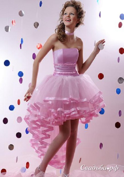 Корсетное платье на шнуровке. Воздушная юбочка из фатина, отороченного атласными лентами в цвет, подчеркнет романтическое настроение праздника.