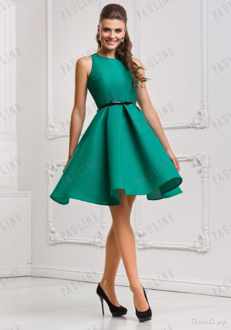 Эффектное платье с пышной юбкой в складку и карманами. Тонкий лаковый поясок подчеркивает талию. Изумрудное счастье для рыжих красоток!